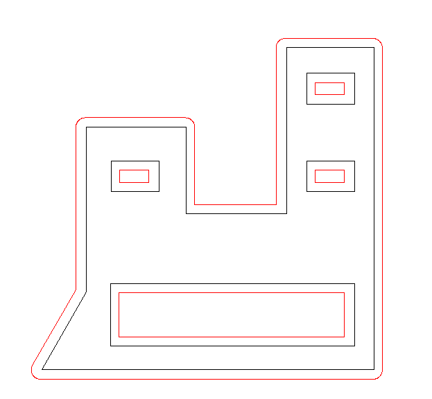 The program identifies which parts are holes and which aren’t. Then, in the holes it puts the kerf distance in the inner direction, and in the remaining parts, in the outer direction.